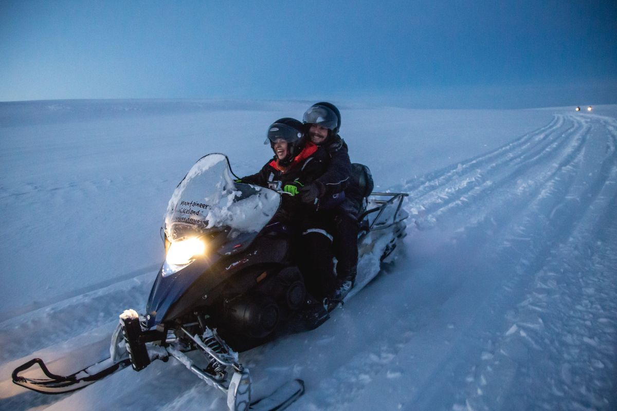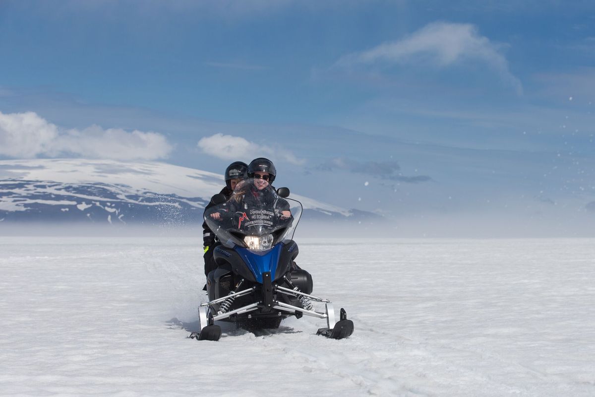 Our first stop is at Þingvellir National Park, which is one of Iceland's most significant historical sites. It's the home of Iceland’s first parliament which was founded in 930 AD. From Þingvellir we head along mountain tracks toward the world-renowned geothermal area around Geysir Hot Spring, the one spouting hot spring on Earth after which all other spouting hot springs are named. From there we continue on to Gullfoss (“the Golden waterfall”) where your proximity to its edge is so close you can feel the spray of the glacial water on your face. Next, we kick the action into higher gear to get even closer to Iceland’s nature and go for a one-hour snowmobile tour on Langjökull, Europe’s second-largest glacier.