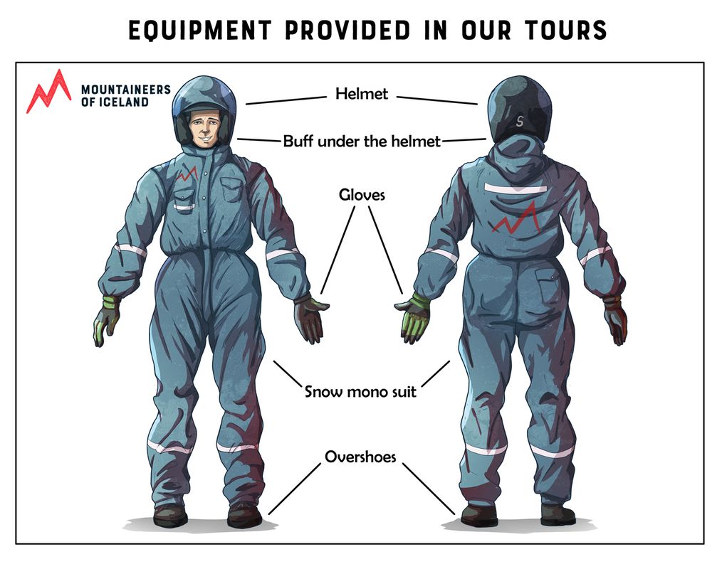 All necessary gear provided for snowmobiling.